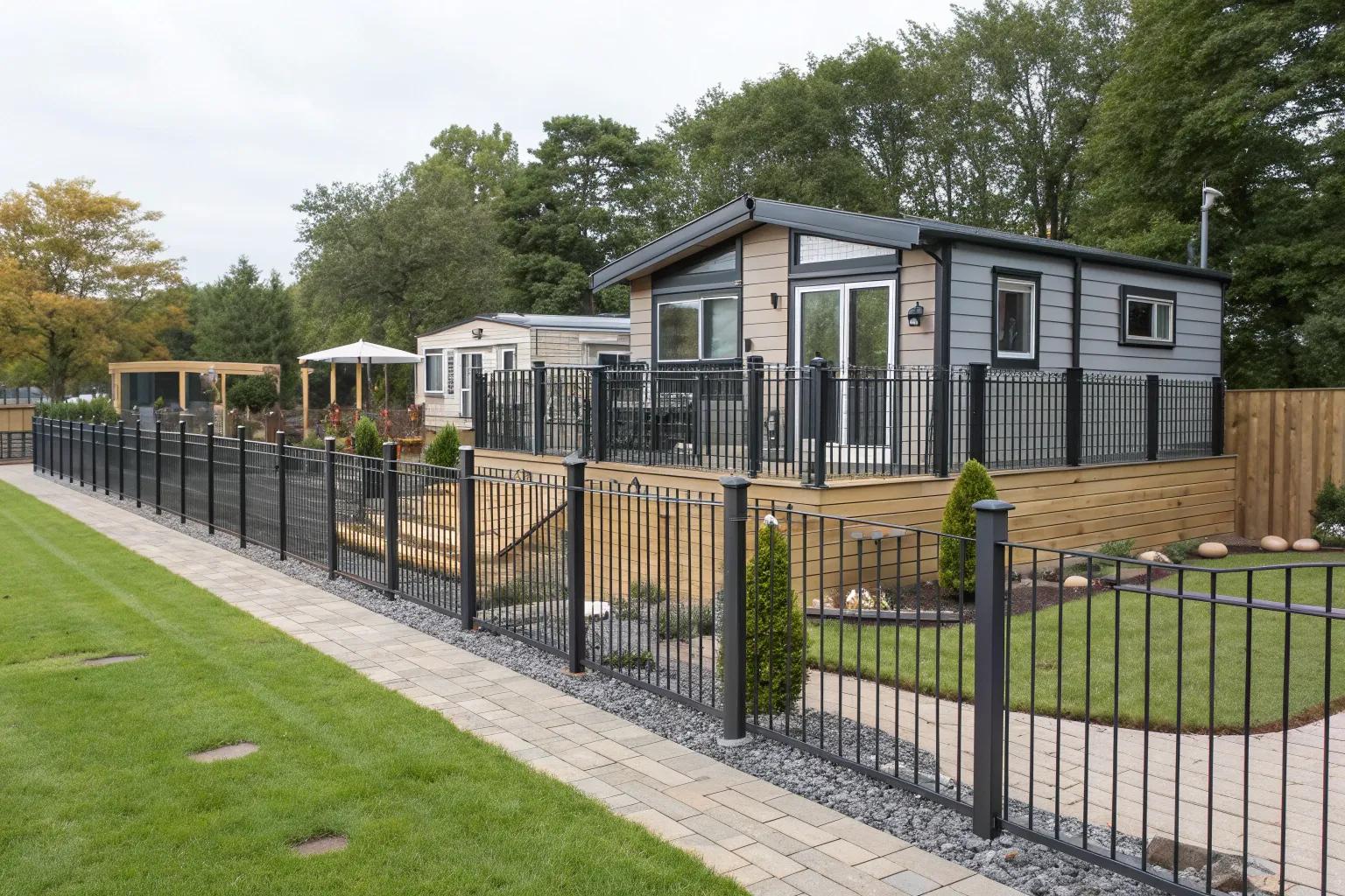 For a sleek, contemporary vibe, consider a modern metal fence. One of my clients opted for this style, enjoying both durability and a design that complements their minimalist mobile home.