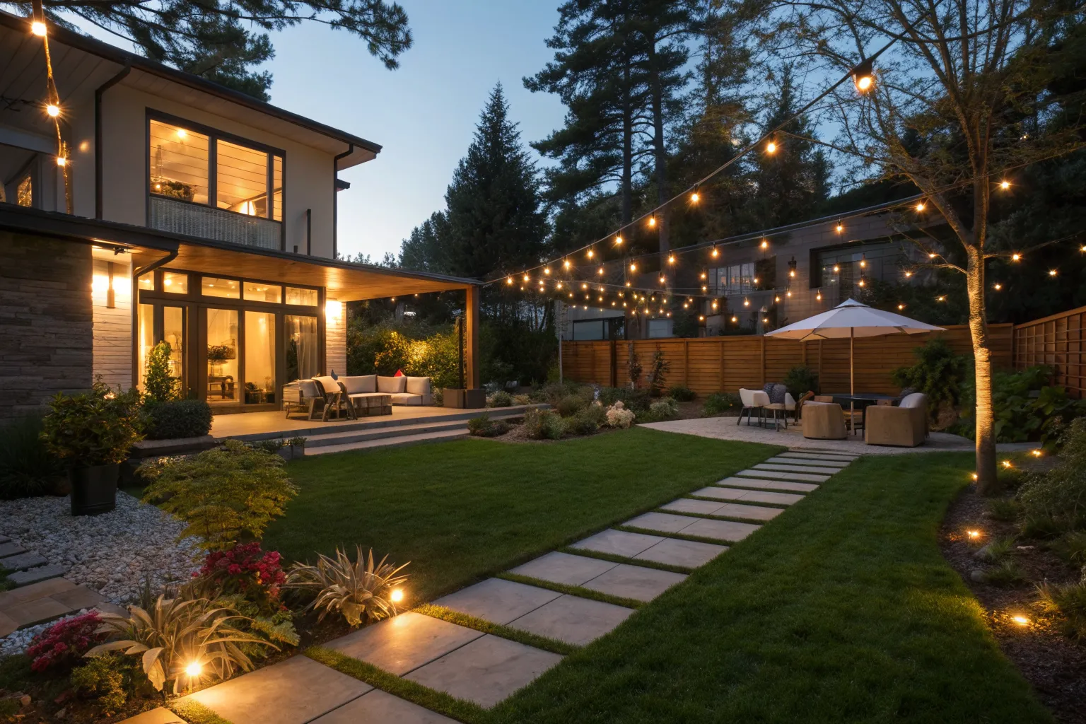 For a modern touch, install recessed ground lighting in your backyard. Clients love how these lights offer a chic and unobtrusive glow, making the space feel sleek and sophisticated.