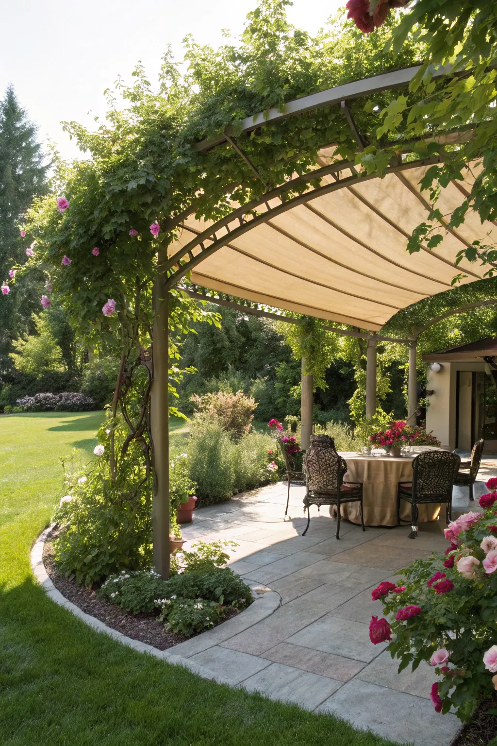 For flexible shade options, consider a retractable canopy with your curved pergola. This feature allows you to control the amount of sunlight and create a comfortable environment all year round.