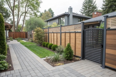 Combine wood and metal for a unique fence that offers the best of both worlds. A client of mine loved how this approach added texture and interest without overwhelming the landscape.