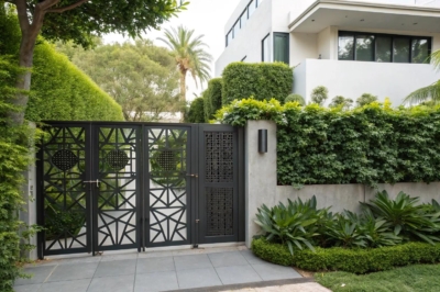 - Modern Metal Gate Panels: Enhance your home’s entrance with stylish metal panels balancing privacy and openness effortlessly.
