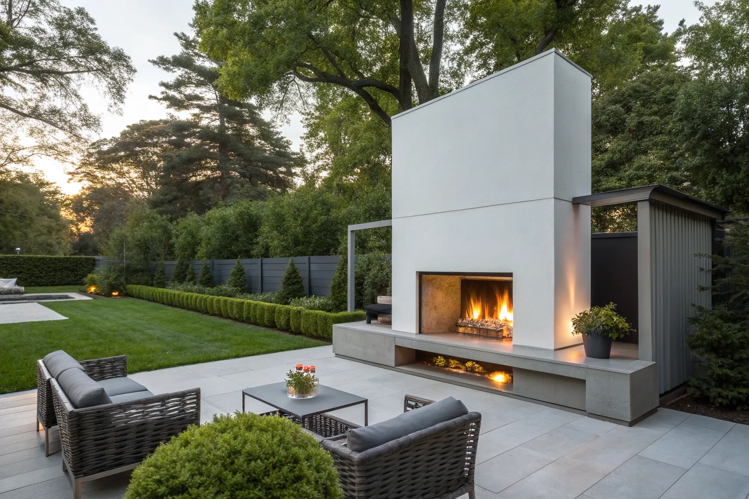 Imagine a sleek concrete fireplace as the centerpiece of your backyard. From my experience, clients love its minimalist vibe that complements any modern landscape.