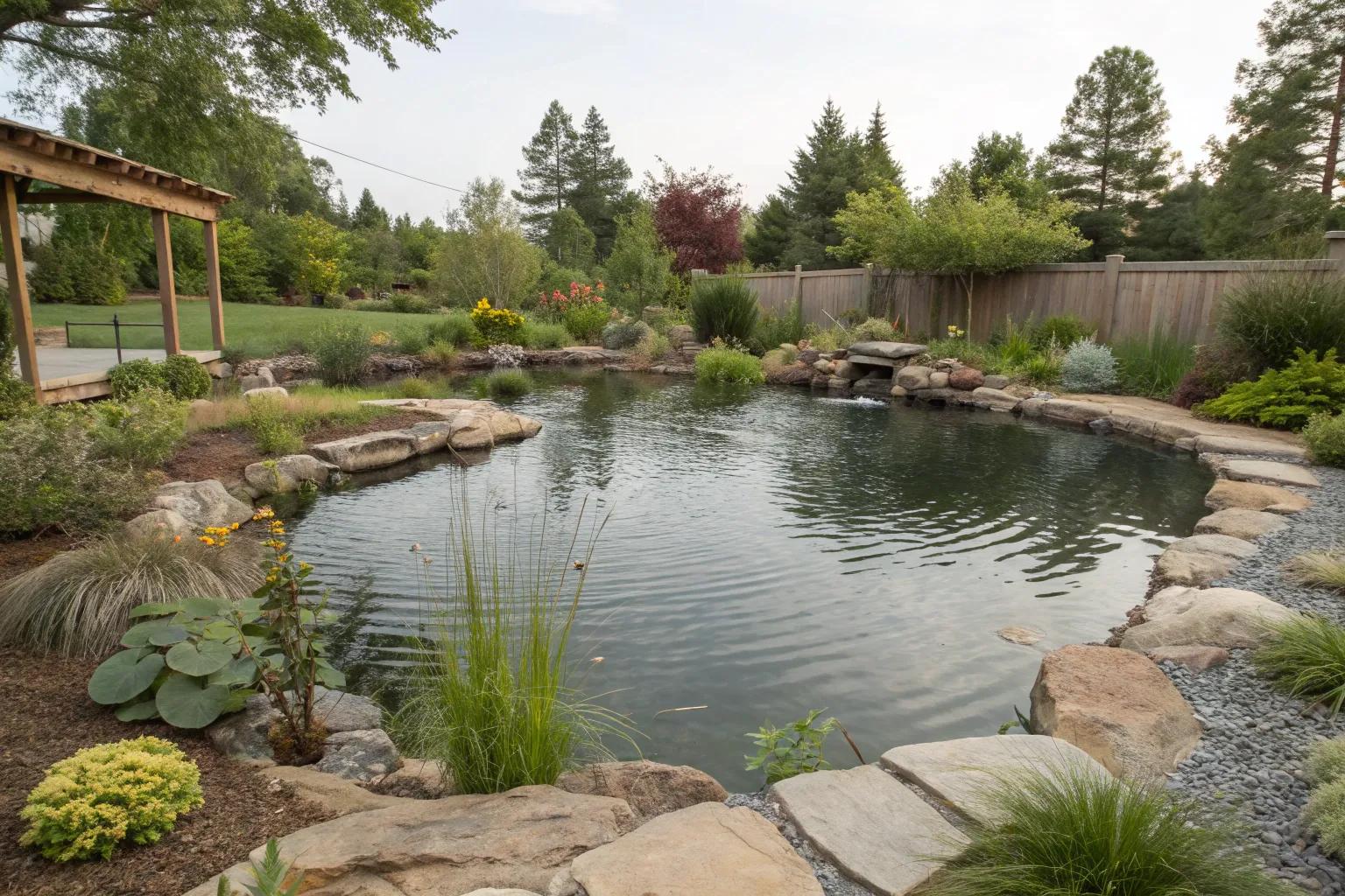 Incorporate rocky outcrops to provide shelter and basking spots for wildlife. This naturalistic touch can make your pond a favorite sunbathing spot for turtles and frogs.