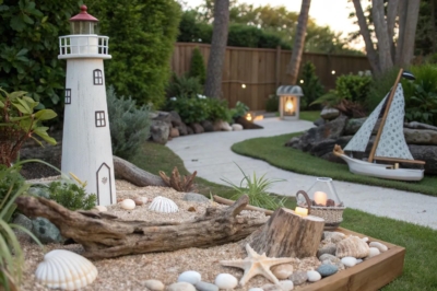 Incorporate nautical signs to personalize your space with a beachy flair. I helped a friend create custom signs for their garden, and it added a playful, inviting touch.