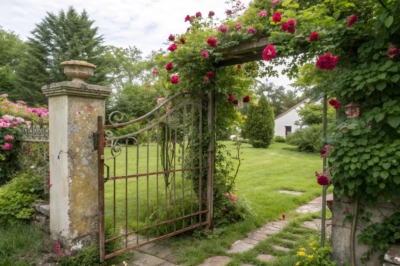 Position an old gate to frame a specific garden view, creating a picturesque scene. It’s a trick I’ve used to encourage guests to pause and appreciate the beauty around them.
