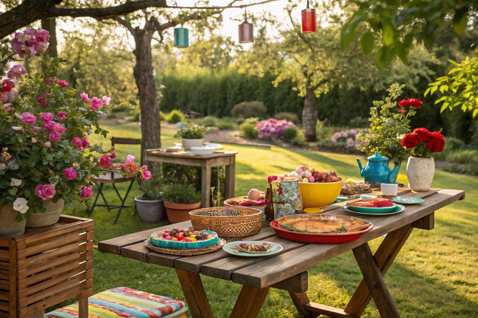 - Rustic Wooden Picnic Table: Enhance your garden dining with a stylish and durable wooden picnic table for family gatherings.