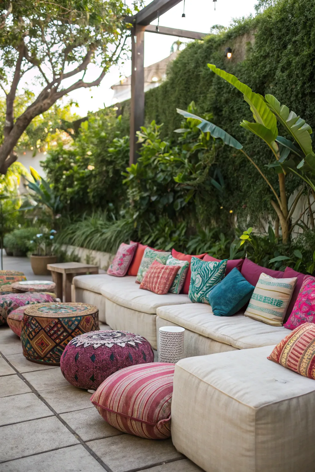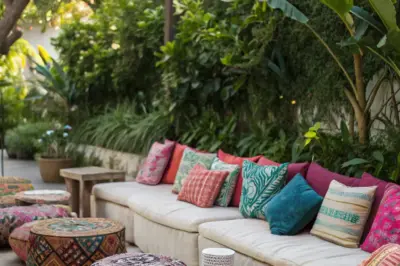 Create a cozy seating nook with plush sofas and colorful cushions that invite you to sit and stay awhile. In my own backyard, mixing different textiles adds warmth and makes the space feel like an extension of my living room.