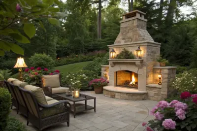 Draping fairy lights in nearby trees or shrubs can create an enchanting atmosphere around your fireplace. This idea is perfect for those who love a touch of magic in their garden.
