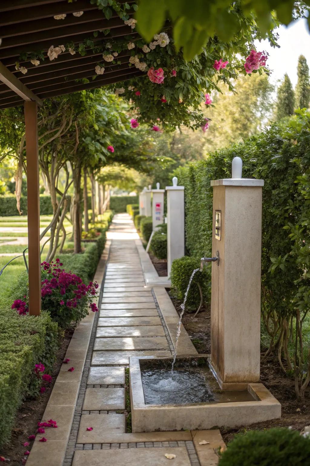 Line the path to your foot wash station with lush plants for a refreshing and inviting feel. It’s a simple way to enhance the natural beauty of your space.