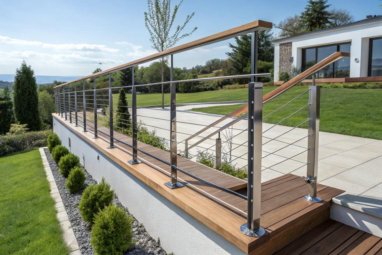 Cable railings are all about sleek, architectural style. They’re perfect for those who want an unobstructed view while keeping everything secure.