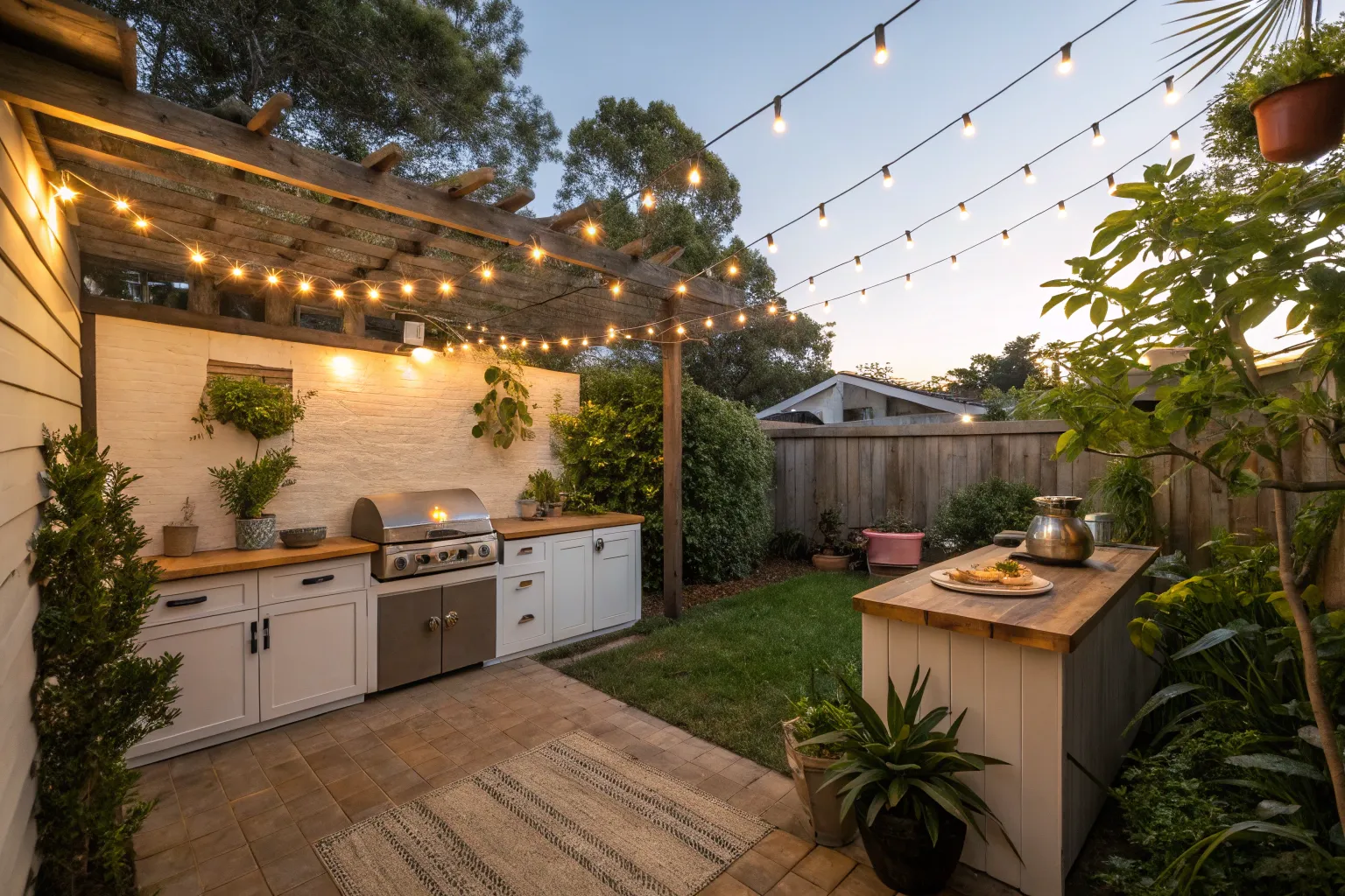 Design your kitchen with space efficiency in mind by opting for a compact layout. In my own backyard, I squeezed in a full-functioning kitchen into a cozy corner, maximizing every inch.