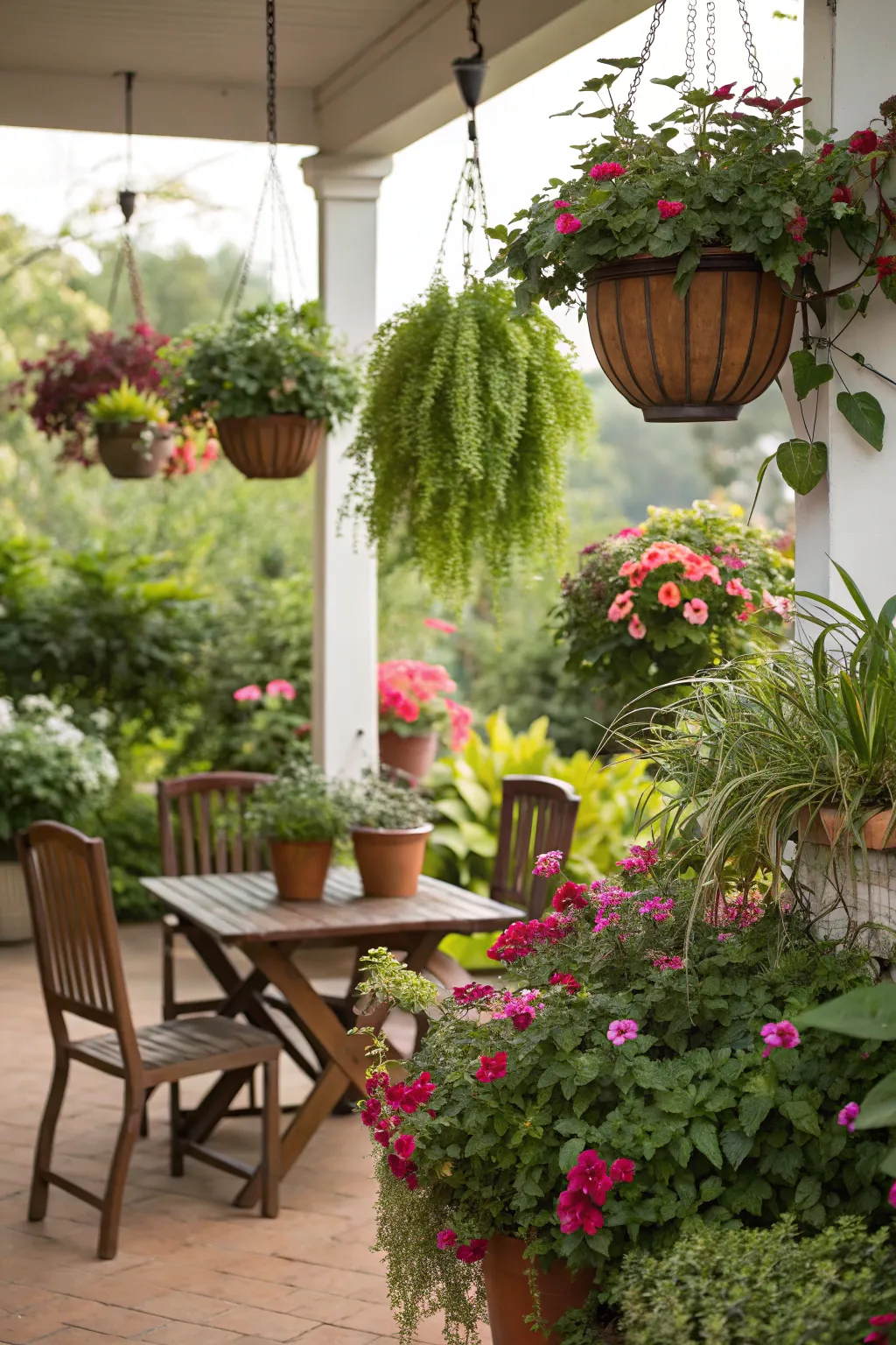Plants are the soul of any outdoor space. I always suggest adding potted plants and hanging planters to bring life and color to your patio.
