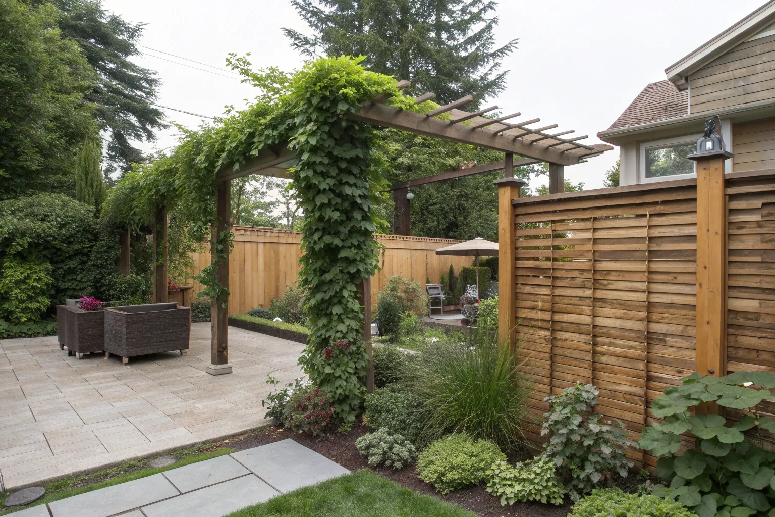 - Climbing Plants for Pergolas: Embellish your pergola with lush climbing plants for added privacy and natural beauty.