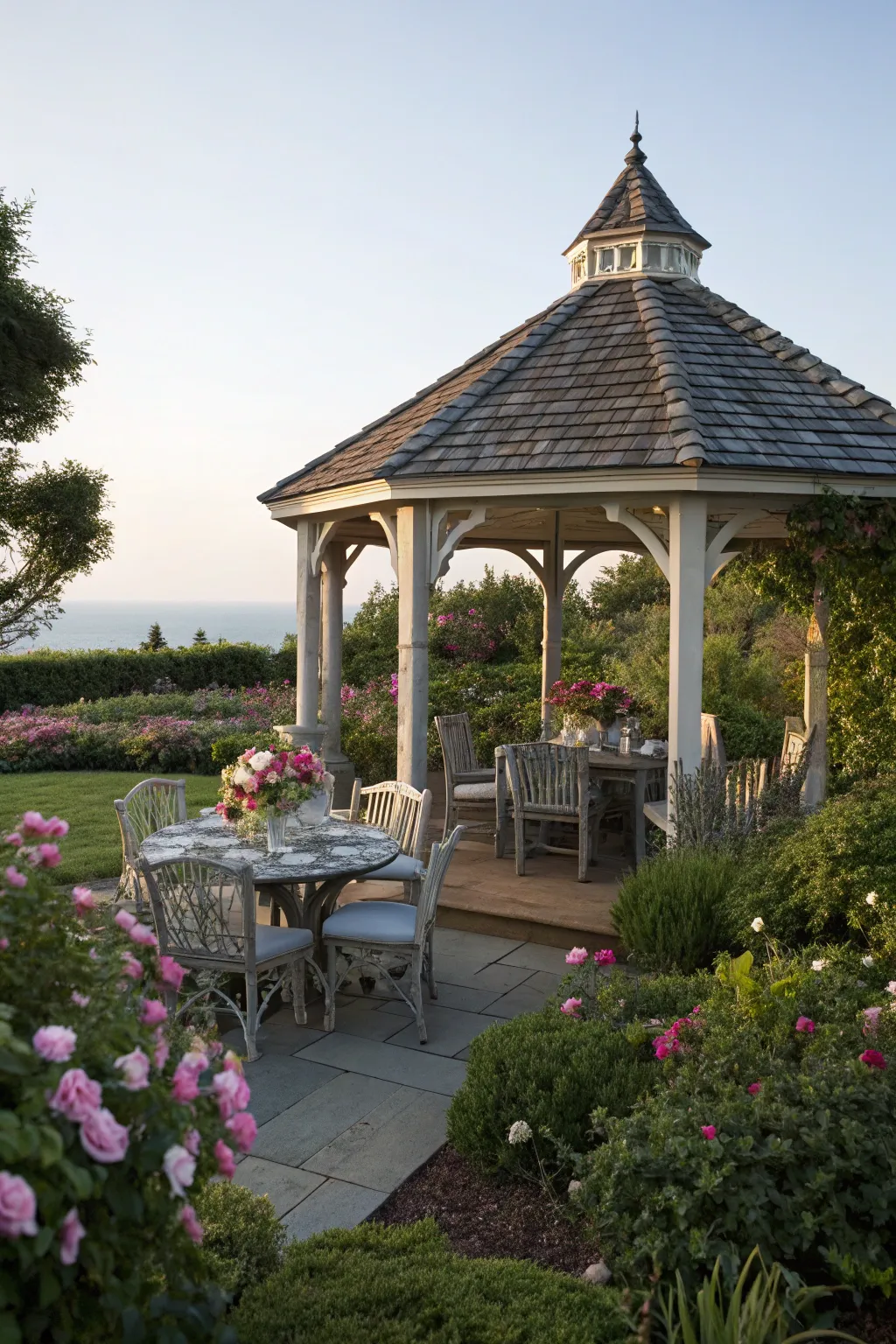 A gazebo can serve as a charming focal point in your garden, offering a permanently covered area with a classic touch. I often recommend this for clients who want a dedicated space for relaxation or dining.