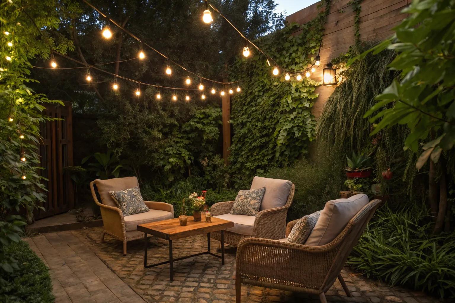 Hang string lights to turn your backyard into a magical escape. A client added them to their pergola, and it transformed their evenings into a fairy-tale setting.