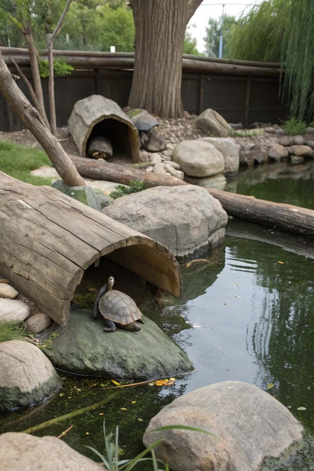 Consider building a natural pond as a centerpiece for your turtle habitat. It not only looks stunning but also provides a refreshing spot for your turtles to swim and relax, just like they would in the wild.