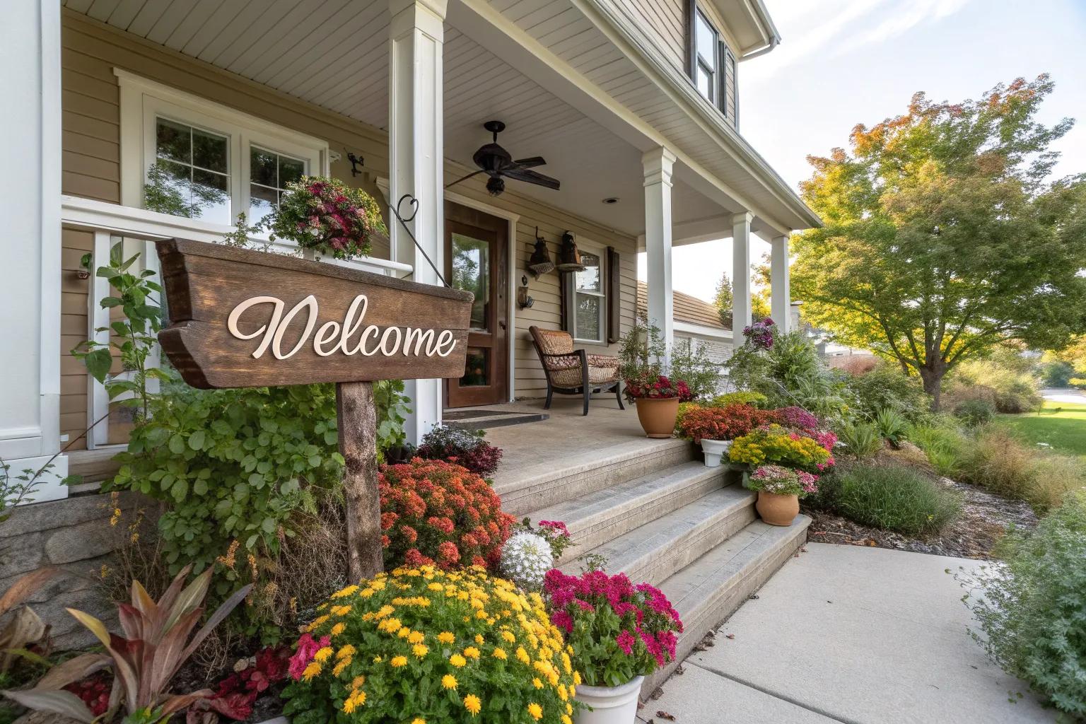- Colorful Outdoor Welcome Sign: Brighten your entryway with a vibrant outdoor welcome sign, expressing your cheerful personality.