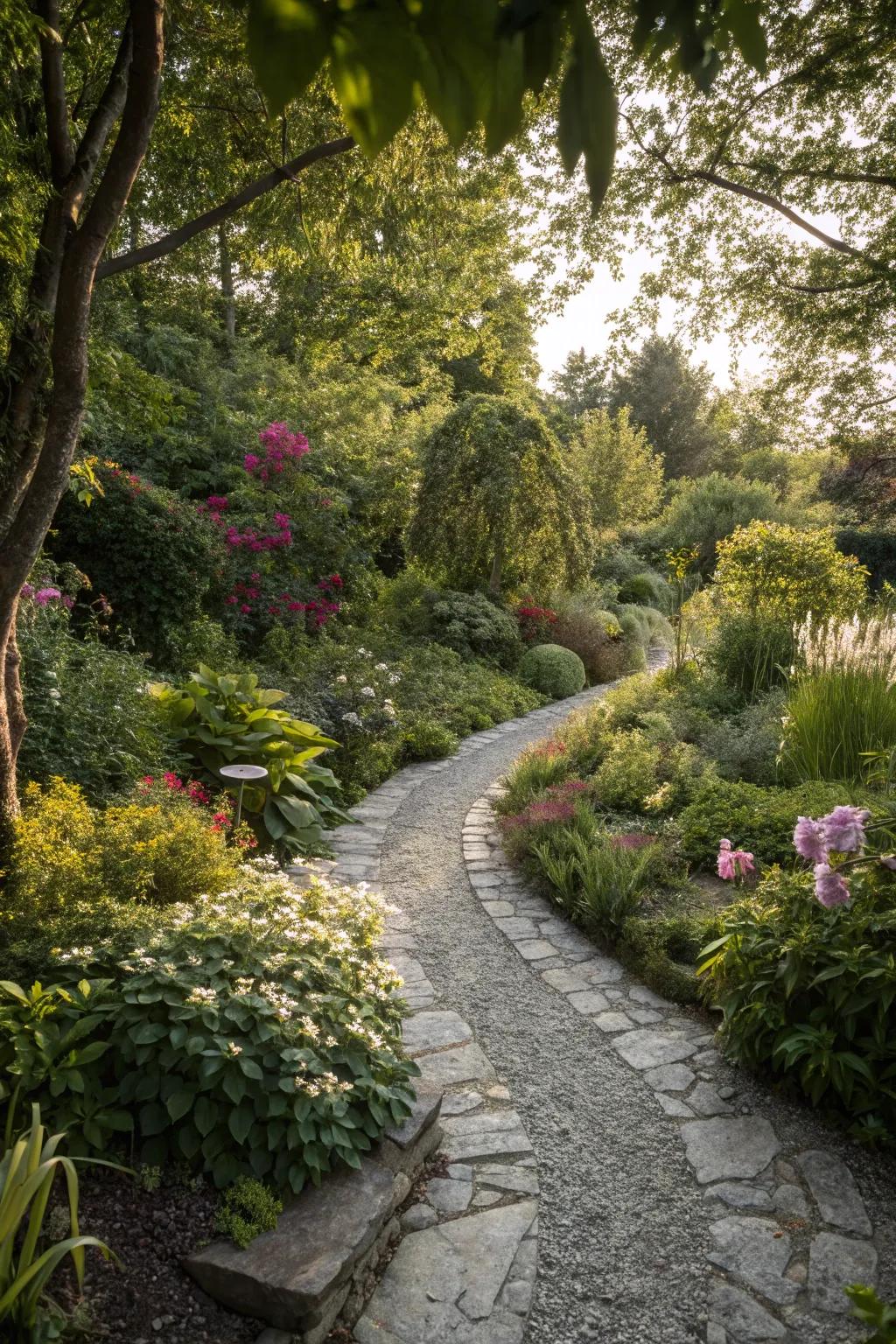 Guide guests through your garden with a charming stone or gravel path. It’s an easy DIY project that adds both function and style.