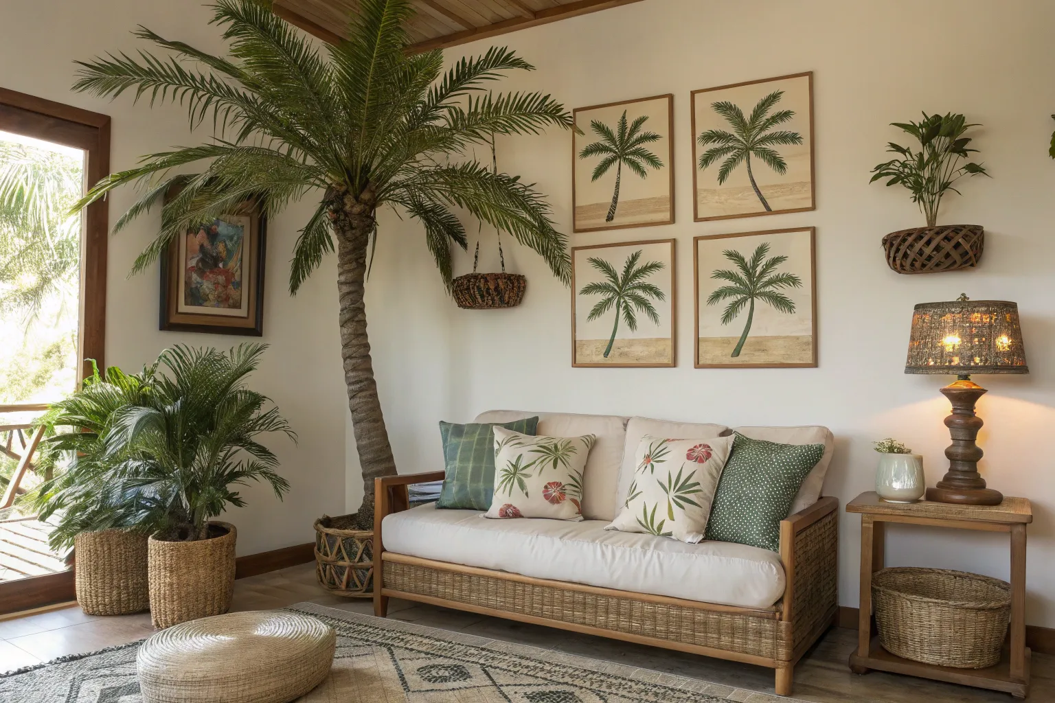 A bold piece of palm-themed wall art can serve as a stunning focal point in any room. I once helped decorate a client’s living room with a vibrant palm mural that completely transformed the space.