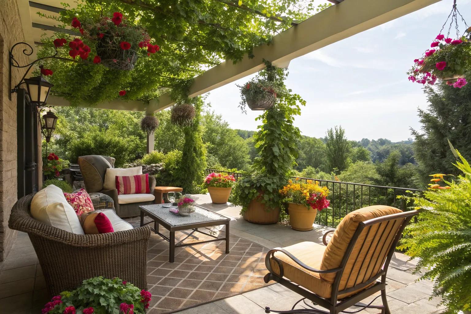 Incorporate potted plants and hanging baskets to add life and color. Personally, I adore using a mix of succulents and flowering plants for both low maintenance and vibrant pops of color.