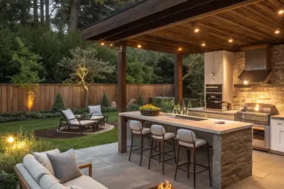 Good lighting transforms a patio kitchen into a magical nighttime retreat. I love using string lights and lanterns to add a whimsical touch that feels like a starry night.