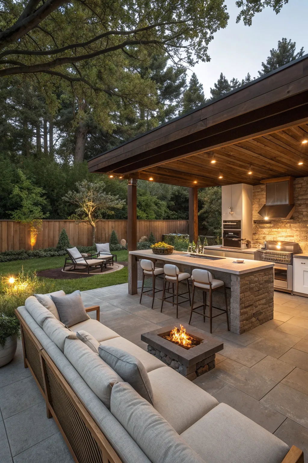 An outdoor countertop or island is perfect for prepping meals and entertaining guests. Consider using natural stone for a rustic yet refined look that I’ve seen transform spaces.