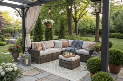 Adding string lights or lanterns around your sectional creates a magical ambiance. This tip never fails to impress during my garden workshops.