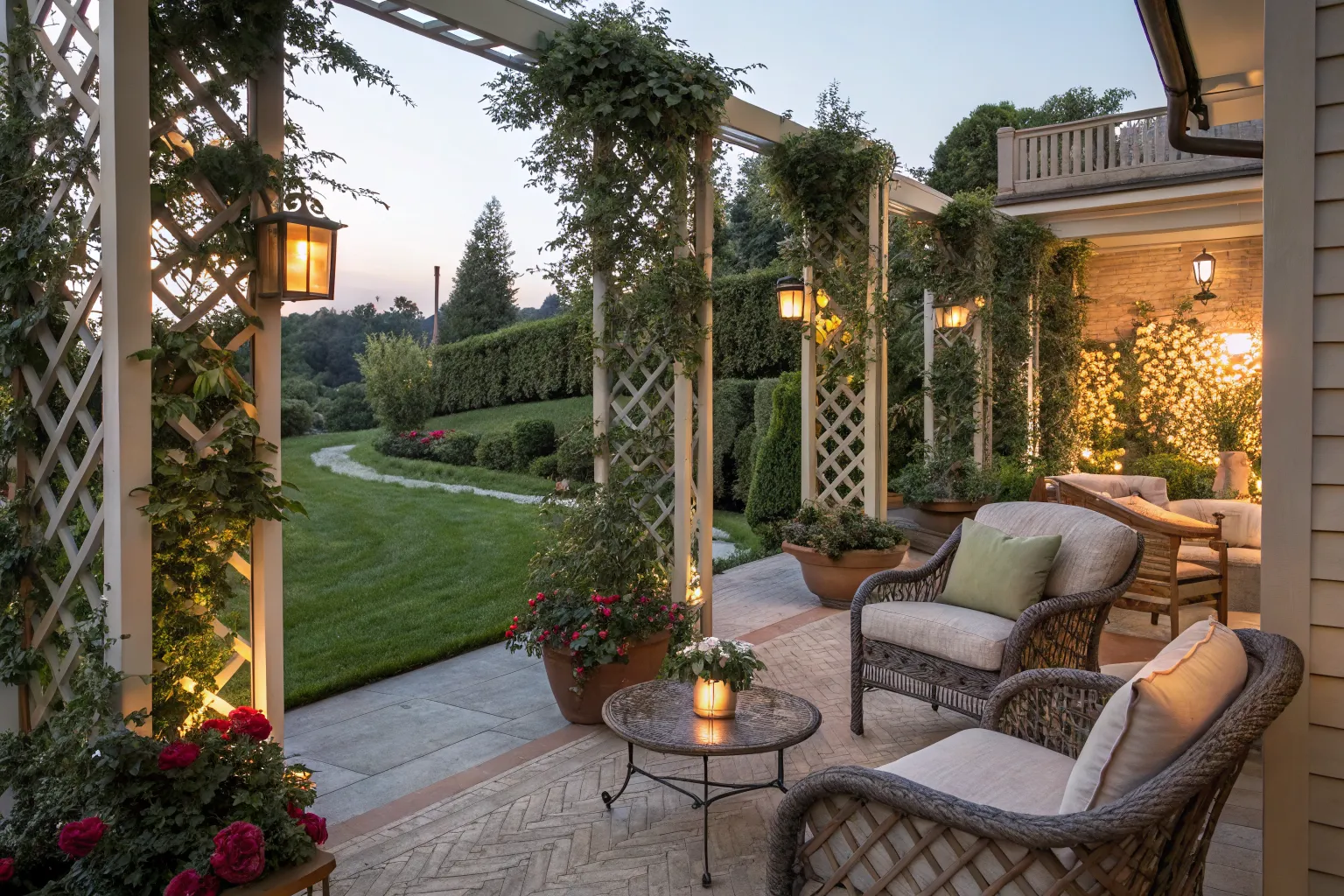 Choose flowering plants for your trellis to add a burst of color to your patio. I always smile seeing how vibrant blooms transform a simple trellis into a show-stopping feature.