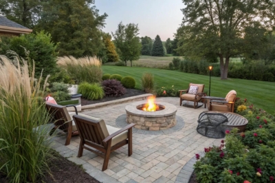 9. Paver Patio with Built-in Firepit