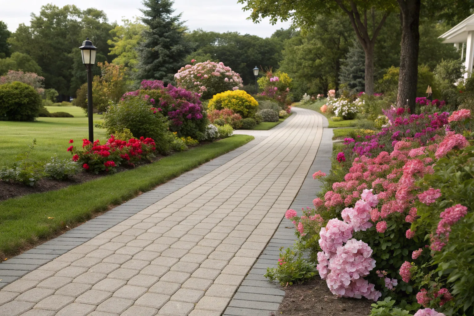 Integrate your sidewalk with garden beds to create a seamless transition between hardscape and softscape. I love using this technique to frame pathways with seasonal blooms.