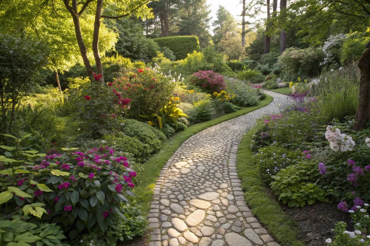 Enhance your pebble path with a nearby water feature. The sound of water adds tranquility and turns your garden into a serene retreat.