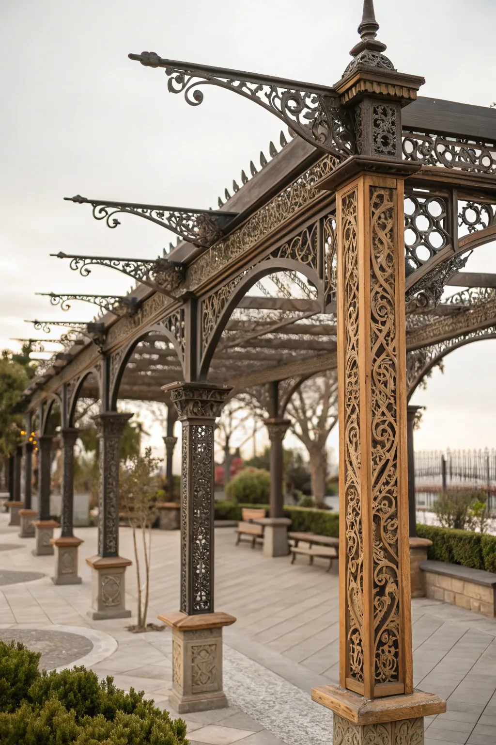 - Custom Metal Brackets: Install custom metal brackets to create a strong and artistic framework for your pergola.