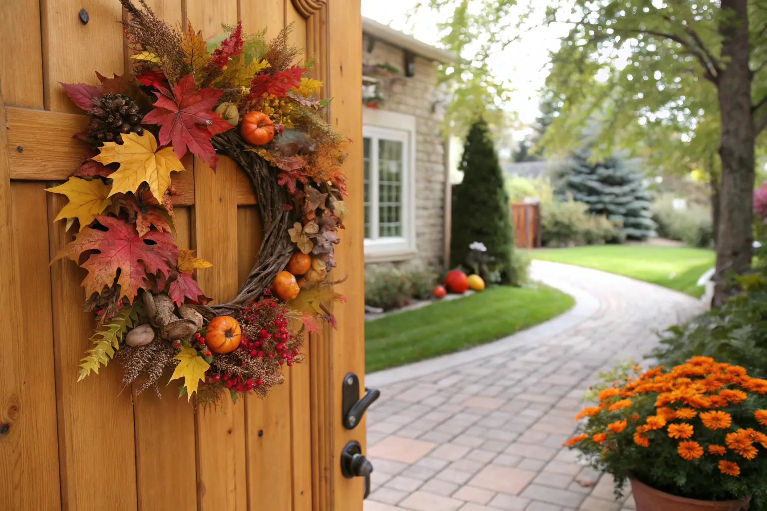 - Fall Leaf Garland: Wrap this fall leaf garland around your wreath for a vibrant seasonal look.