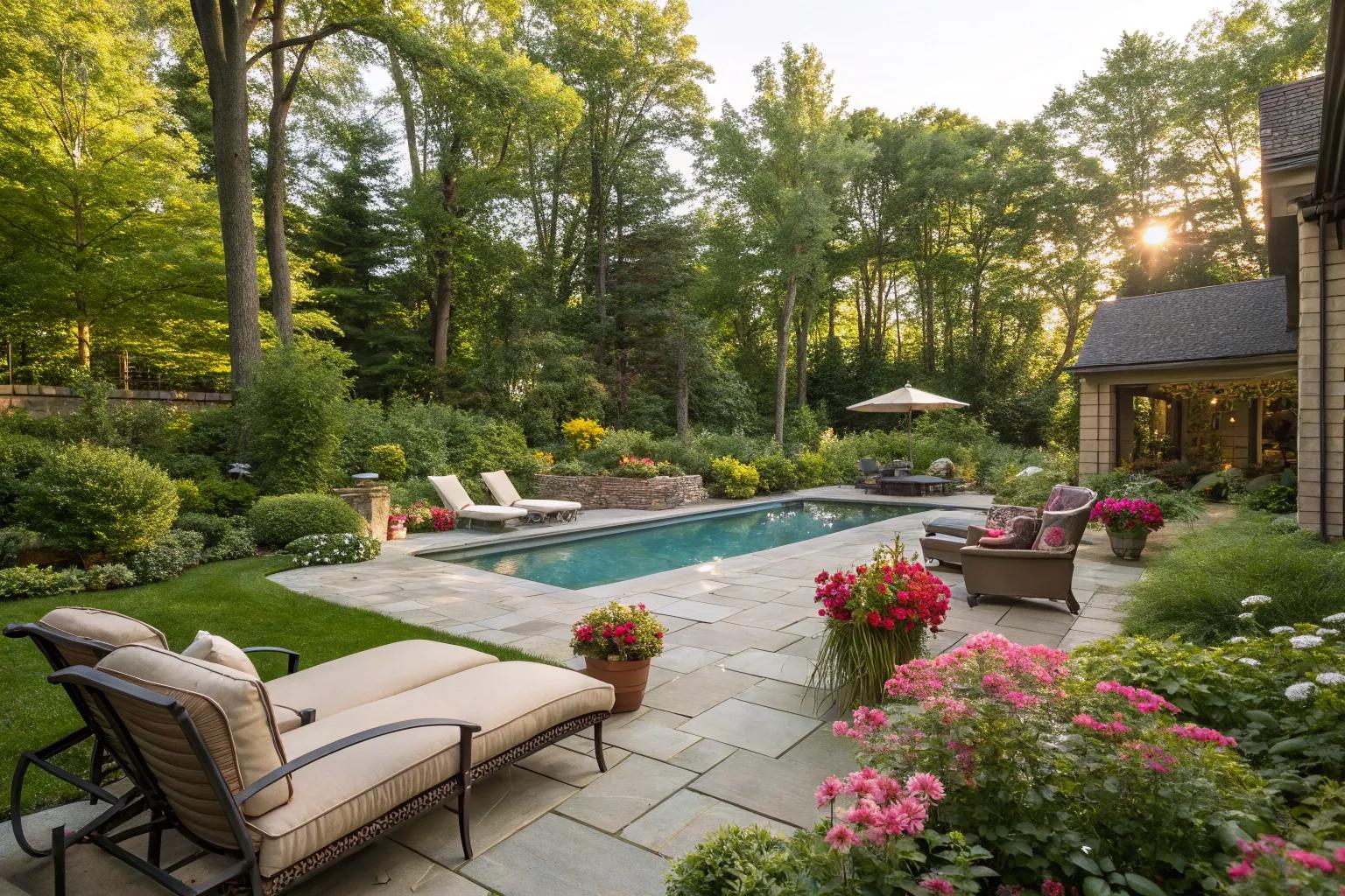 - Natural Stone Stepping Stones: Add charm with natural stone stepping stones, perfect for an earthy, elegant poolside path.