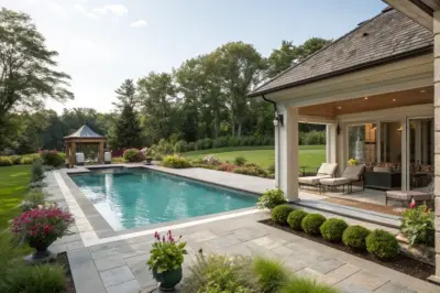 Terrazzo flooring is making a comeback with its chic patterns and durability. I’ve seen it used to stunning effect in modern pool house designs.