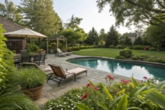 Opt for a swim pond that combines the natural beauty of a pond with the functionality of a swimming area. It’s an eco-friendly alternative that my clients adore.