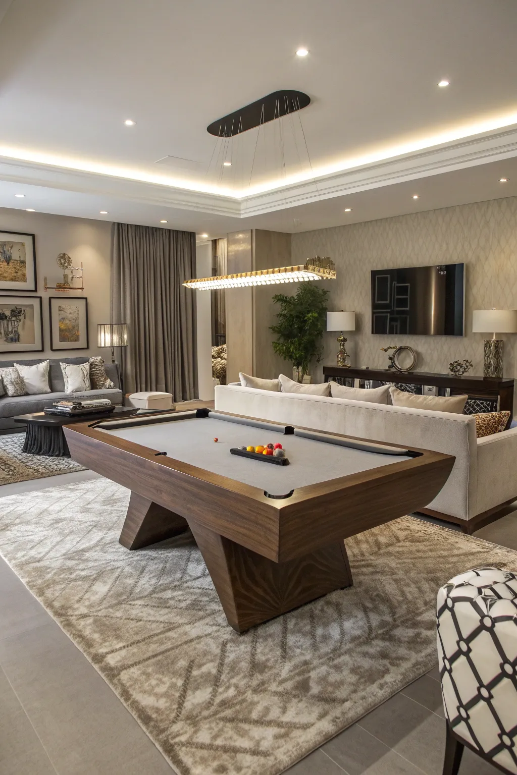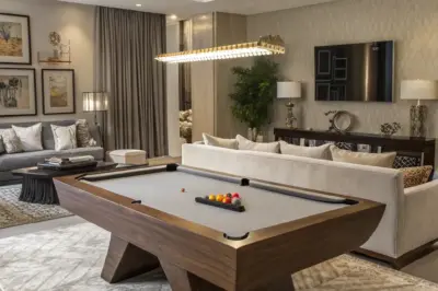 Incorporate ambient lighting around the pool table for a soft, inviting glow. This type of lighting can make the game area feel intimate and relaxing, a favorite in many homes I’ve designed.