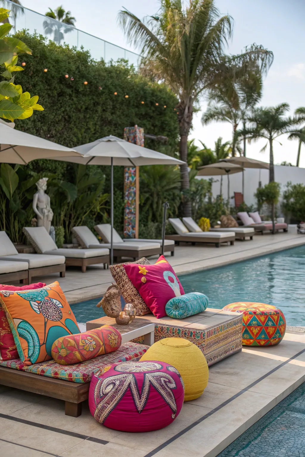 - Colorful Outdoor Cushions: Transform your poolside with vibrant cushions that add color and comfort to your lounge area.