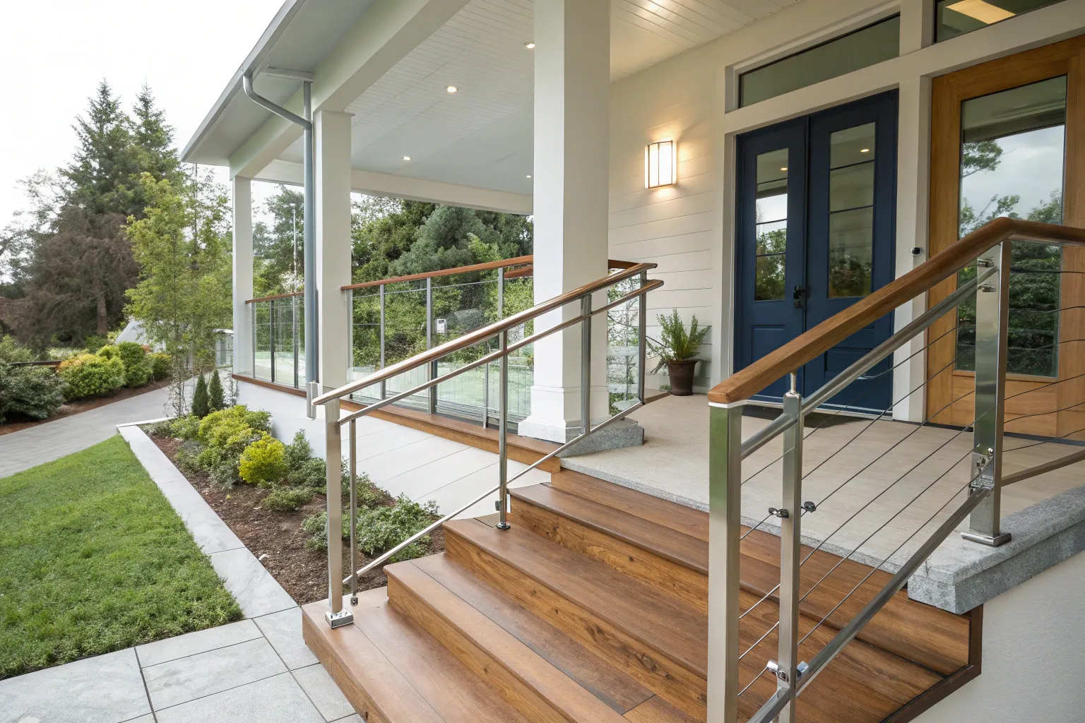 For those seeking an unobstructed view, cable railings are a perfect choice. They blend seamlessly into the background, letting your garden take center stage.