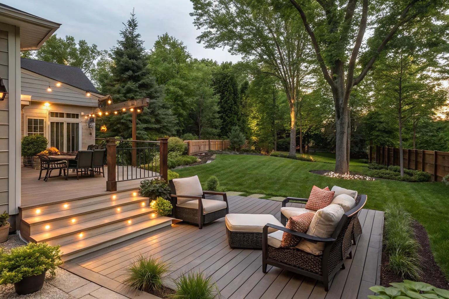 Integrated lighting can transform your deck into an enchanting evening retreat. I love using subtle lights along pathways and railings to create a warm and inviting atmosphere.