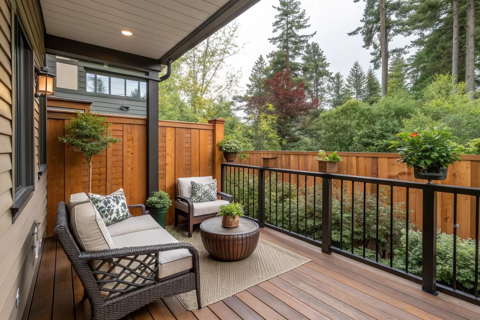 Strategically arranging outdoor furniture can create natural barriers and cozy corners, making your deck feel more secluded.