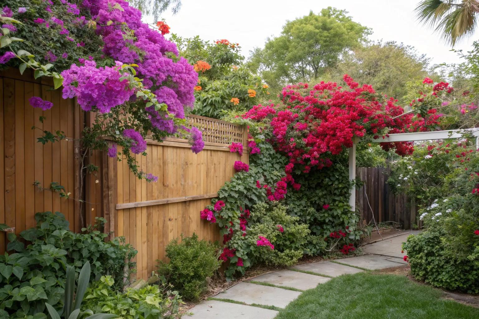 Combining bougainvillea with other climbing plants can create a diverse and lush privacy screen. It’s a technique I often use to add depth and variety to fences.