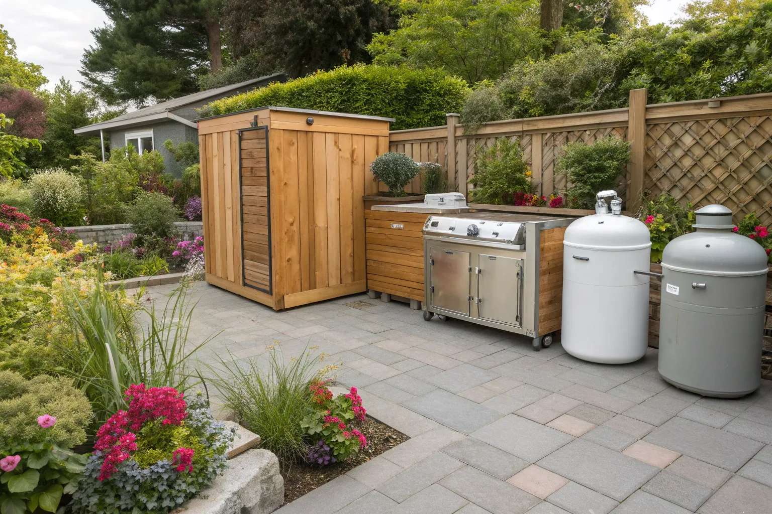 A small, dedicated shed can be a perfect home for your propane tanks, keeping them safe and out of the way. Clients love how this solution frees up space and keeps tanks neatly organized.