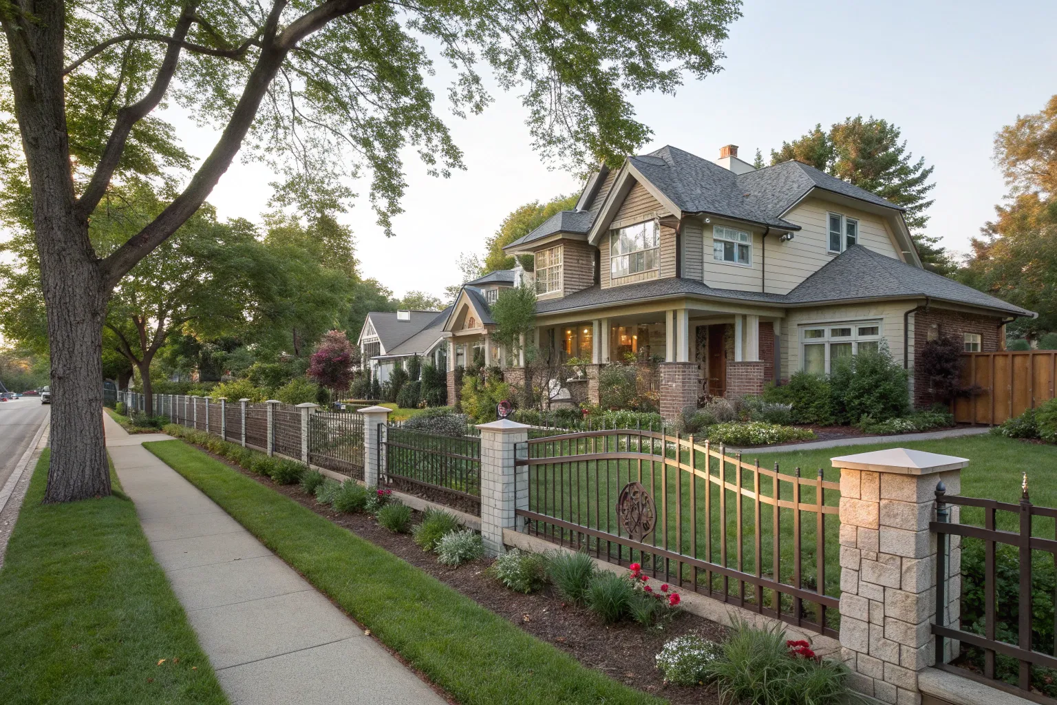 A timeless choice, the wooden picket fence adds charm and warmth to any property. I’ve seen clients opt for a modern twist by painting them in bold colors to match their home’s exterior.