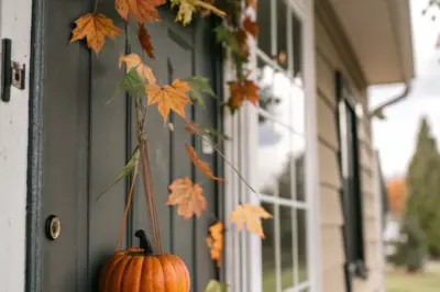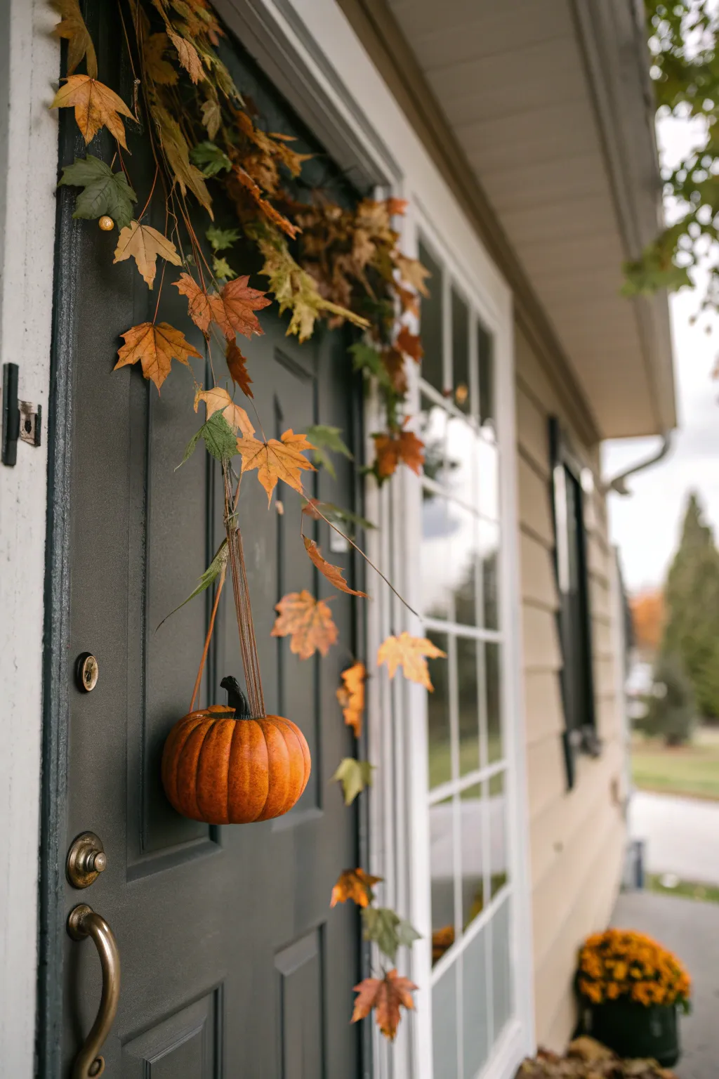 - Autumn Leaf Garland: Brighten your door with an autumn leaf garland, integrating vibrant seasonal hues effortlessly.