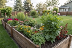 For a modern touch, use metal edges for your raised pond, perfect for urban settings. I’ve seen this design work wonders in compact city gardens.