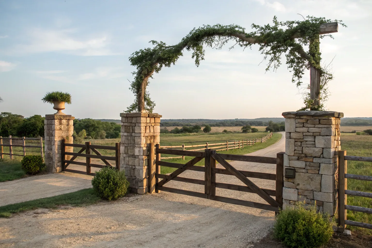 Personalize your entrance with custom metal signage displaying your ranch’s name or initials. This bespoke touch makes your entry uniquely yours, just like the custom signs I’ve crafted for my garden clients.