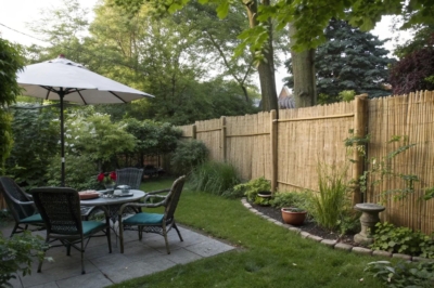 Enhance your outdoor dining area with reed fencing for a rustic, intimate setting. It’s a favorite among my clients for creating the perfect al fresco dining experience.