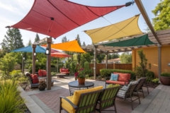 Shade sails add an artistic touch to any patio with their unique shapes and colors. They’re a fun DIY project that I’ve seen become the centerpiece of many creative outdoor spaces.