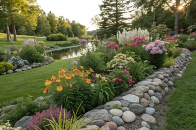 A dry creek bed is an artistic way to manage drainage and add character to your garden. It’s a perfect blend of beauty and functionality that I often recommend.